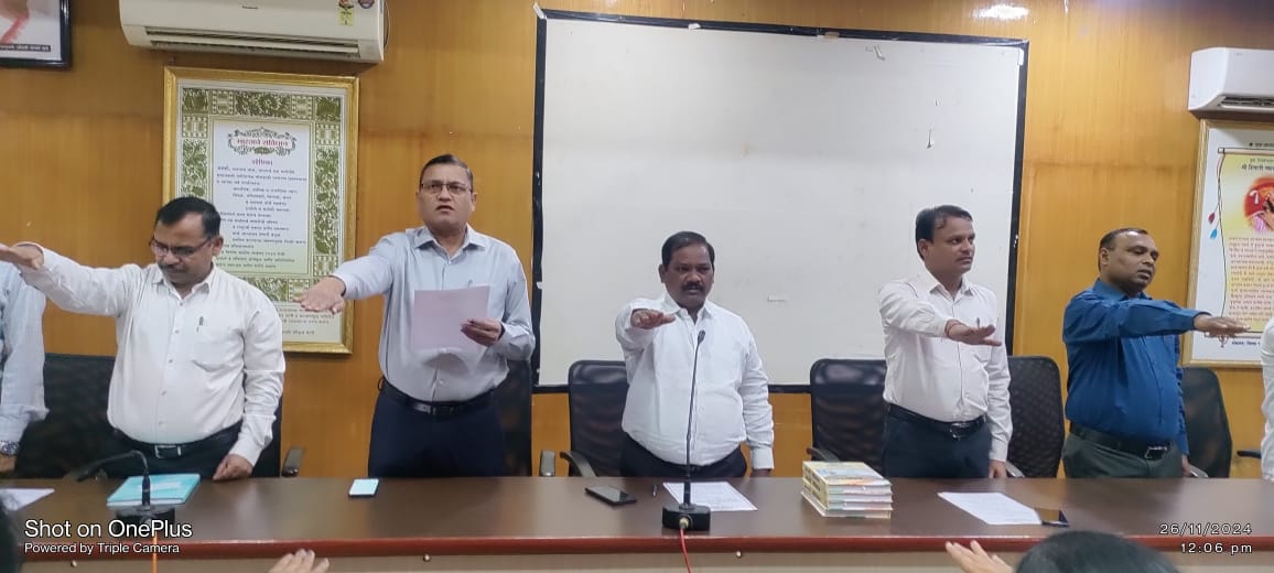 मा.श्री.गुलाब खरात यांच्या संकल्पनेतुन संविधान दिनानिमित्त संविधानावर आधारीत प्रश्नमंजुषा आयोजित करण्यात आली होती, व तीन प्रश्नांची अचुक उत्तरे देणाऱ्या कर्मचाऱ्यास यांना भारतीय संविधानाची प्रत भेट म्हणुन देण्यात आली. यामध्ये श्री.आकाश नवघरे,श्रीमती आरती गवई,कु,प्रतिक्षा दळे,अजित चव्हाण हे कर्मचारी प्रश्नमंजुषा चे विजेते ठरले त्यांना श्री गुलाब खरात यांच्या हस्ते संविधानाची प्रत भेट म्हणुन देण्यात आली.