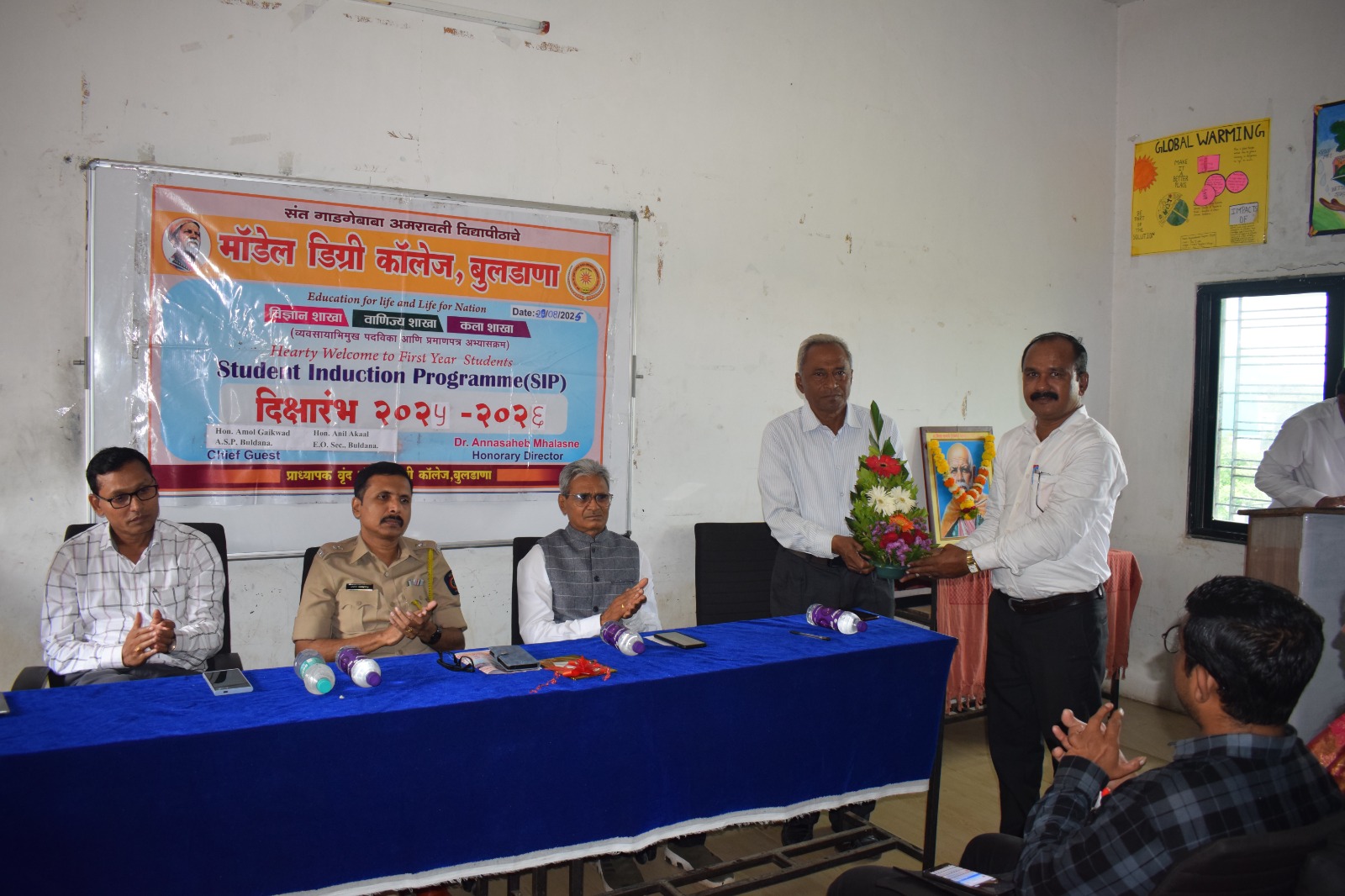 बुलढाणा येथील मॉडेल डिग्री कॉलेजमध्ये २० ऑगस्टला दीक्षारंभ कार्यक्रमाचे आयोजन करण्यात आले होते.या कार्यक्रमाला प्रमुख पाहुणे म्हणून शिक्षणाधिकारी अनिल अकाळ,अतिरिक्त जिल्हा पोलीस अधिक्षक श्री अमोल गायकवाड, उपशिक्षणाधिकारी आशिष वाघ, तर कार्यक्रमाच्या अध्यक्षस्थानी मॉडेल डिग्री कॉलेजचे मानद संचालक अण्णासाहेब म्हळसणे आणि प्रा कीसन वाघ व्यासपिठावर उपस्थित होते.