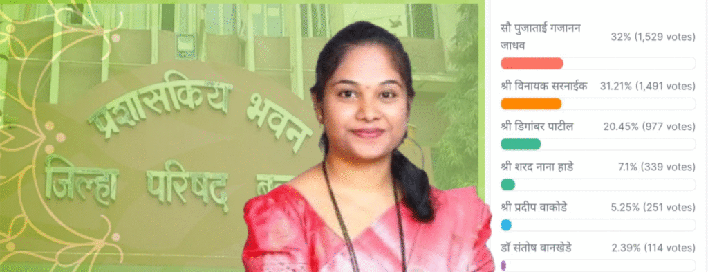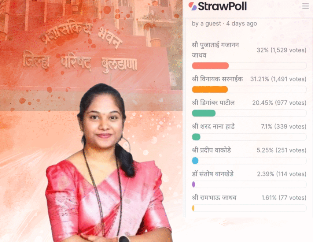 तसेच बरेच सामान्य नागरिक स्मार्ट फ़ोन चा वापर करत नसल्यामुळे त्यांच्यापर्यंत हा पोल पोहोचला नसल्याची शक्यता आहे यामुळेच या पोल मधे काँग्रेसचे नेते रामभाऊ जाधव व कृषी उत्पन्न बाजार समितीचे सभापती डॉक्टर संतोष वानखेडे याना पोलमध्ये तितकासा प्रतिसाद मिळाला नसल्याचे दिसून येत आहे, मात्र त्यांचा राजकीय अनुभव देखील पाहता त्याना या सर्कल मध्ये दुर्लक्षित करून चालणार नाही..परंतु सर्कल मधील जनसंपर्क व नागरिकांचा प्रतिसाद बघता पूजा गजानन जाधव यांनी त्यांची उमेदवारी मजबूत केल्याची दिसून येत आहे… हा पोल त्यांच्या अथक समाजकार्याची पावतीच या पोल सर्वेला म्हणावे लागेल.