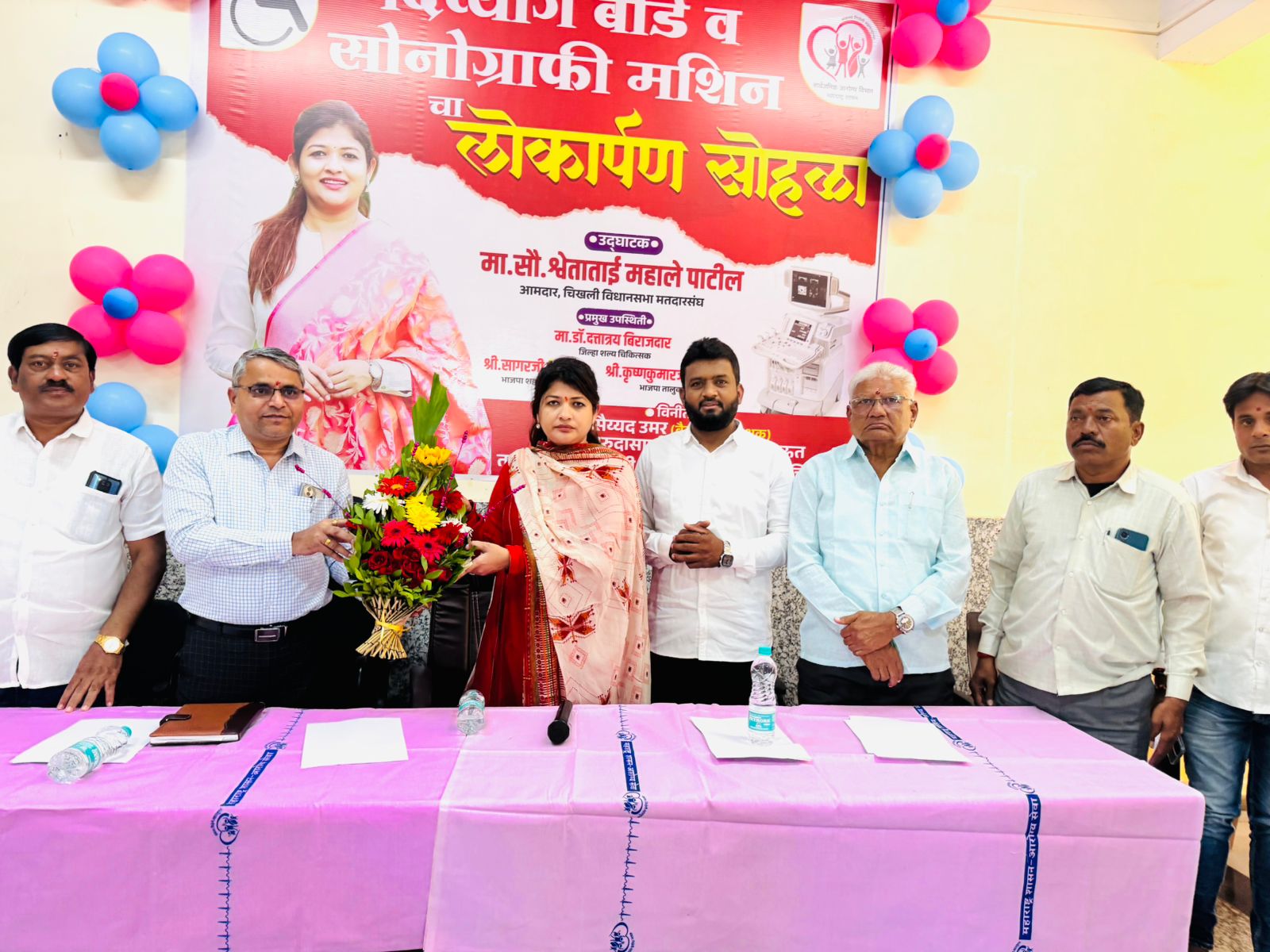 चिखली मतदारसंघातील आरोग्य क्षेत्राला बळकटी देण्यासाठी आणखी एक ऐतिहासिक पाऊल उचलण्यात आले आहे. ग्रामीण रुग्णालय, चिखली येथे दिव्यांग बोर्ड व अत्याधुनिक सोनोग्राफी मशीनच्या लोकार्पण सोहळ्याचा कार्यक्रम आज आमदार सौ. श्वेताताई महाले पाटील यांच्या हस्ते संपन्न झाला.