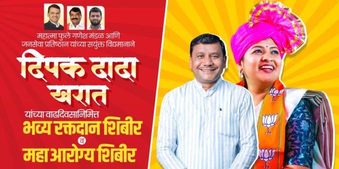 जनतेच्या मनात आपले वेगळे स्थान निर्माण केलेले श्री. दीपकजी खरात यांच्या वाढदिवसानिमित्त आज दिवसभर जनतेच्या आशीर्वादाने विविध तसेच सामाजिक उपक्रमांचे आयोजन करण्यात आले आहे.